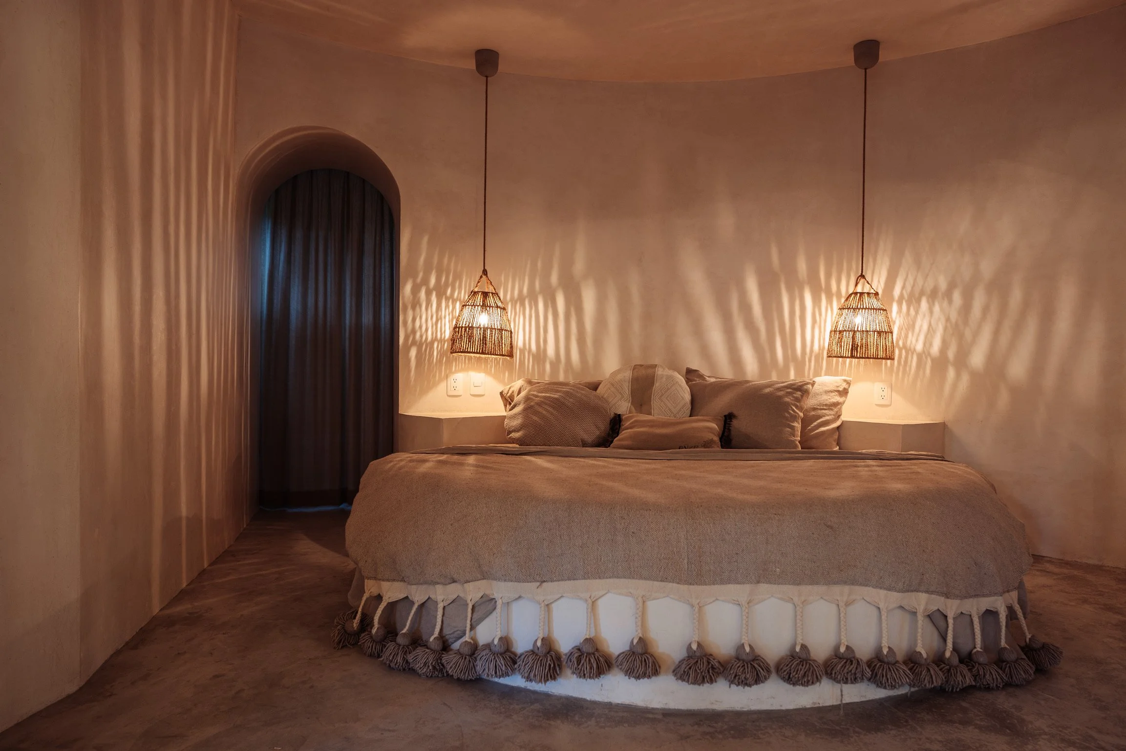 Dotée d’un lit King rond, cette suite comprend une salle de bain privée avec une baignoire profonde en chukum et une douche à effet pluie, un salon spacieux, ainsi qu’une terrasse panoramique avec hamac et chaises longues. Un véritable cocon de luxe.